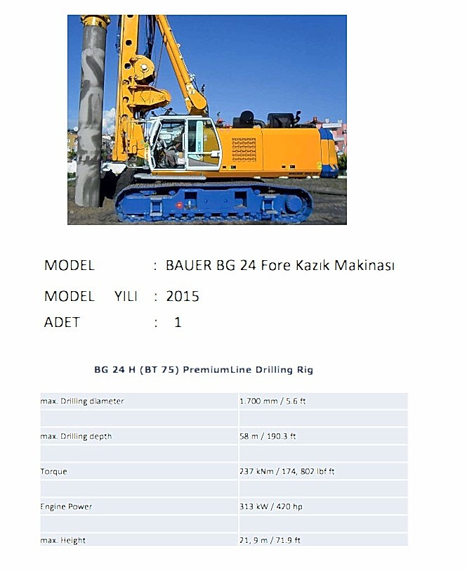 1 Adet BAUER BG 24 Fore Kazık Makinası