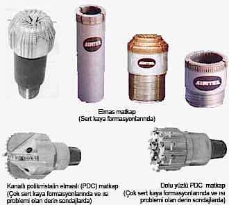 5. Matkaplar: Kayacı kesen elemanlardır. Genelli vidye kron ve elmas uçlu olama üzere iki ana türü vardır. Çok sert kayalarda elmas orta ve yumuşak kayalarda vidye kron matkaplar tercih edilir.